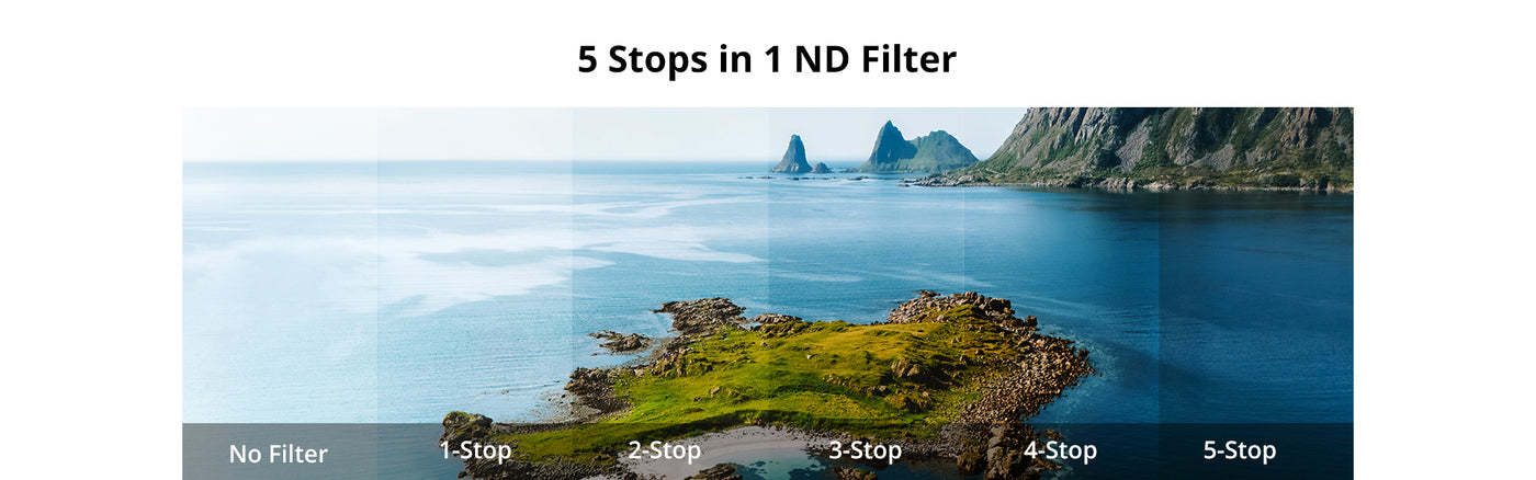 - Offers 1-5 stops of light reduction for precise exposure adjustment in aerial photography.