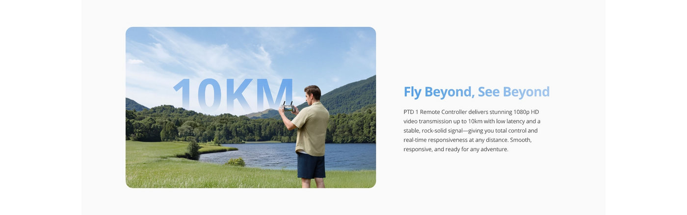 • MAX 10KM Transmission: Powered by advanced PixSync 4.0 technology, the PTD 1 offers ultra-stable, smooth, and low-latency video transmission up to 10 kilometers, ensuring reliable control and a safer flying experience.